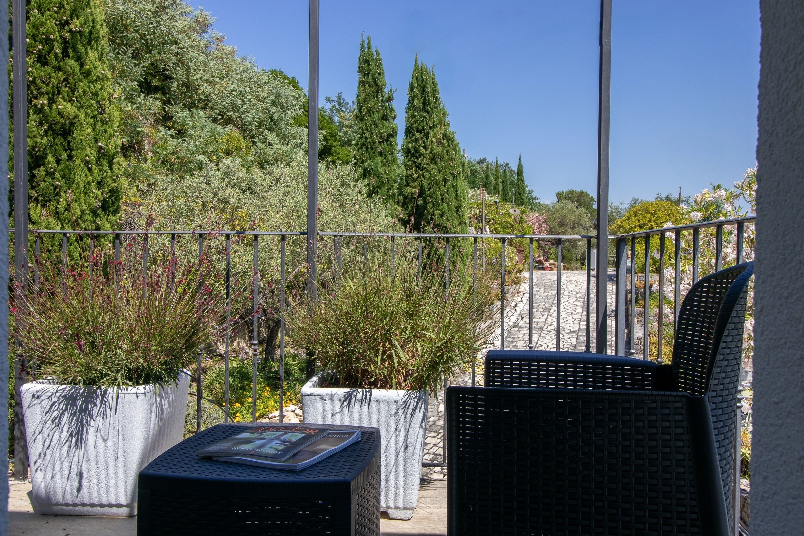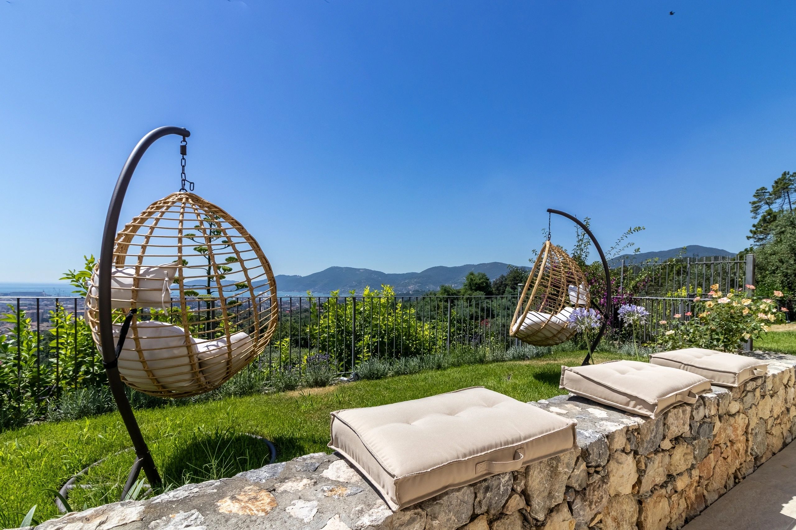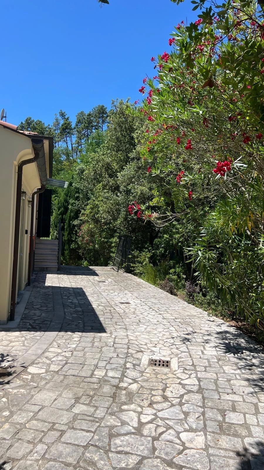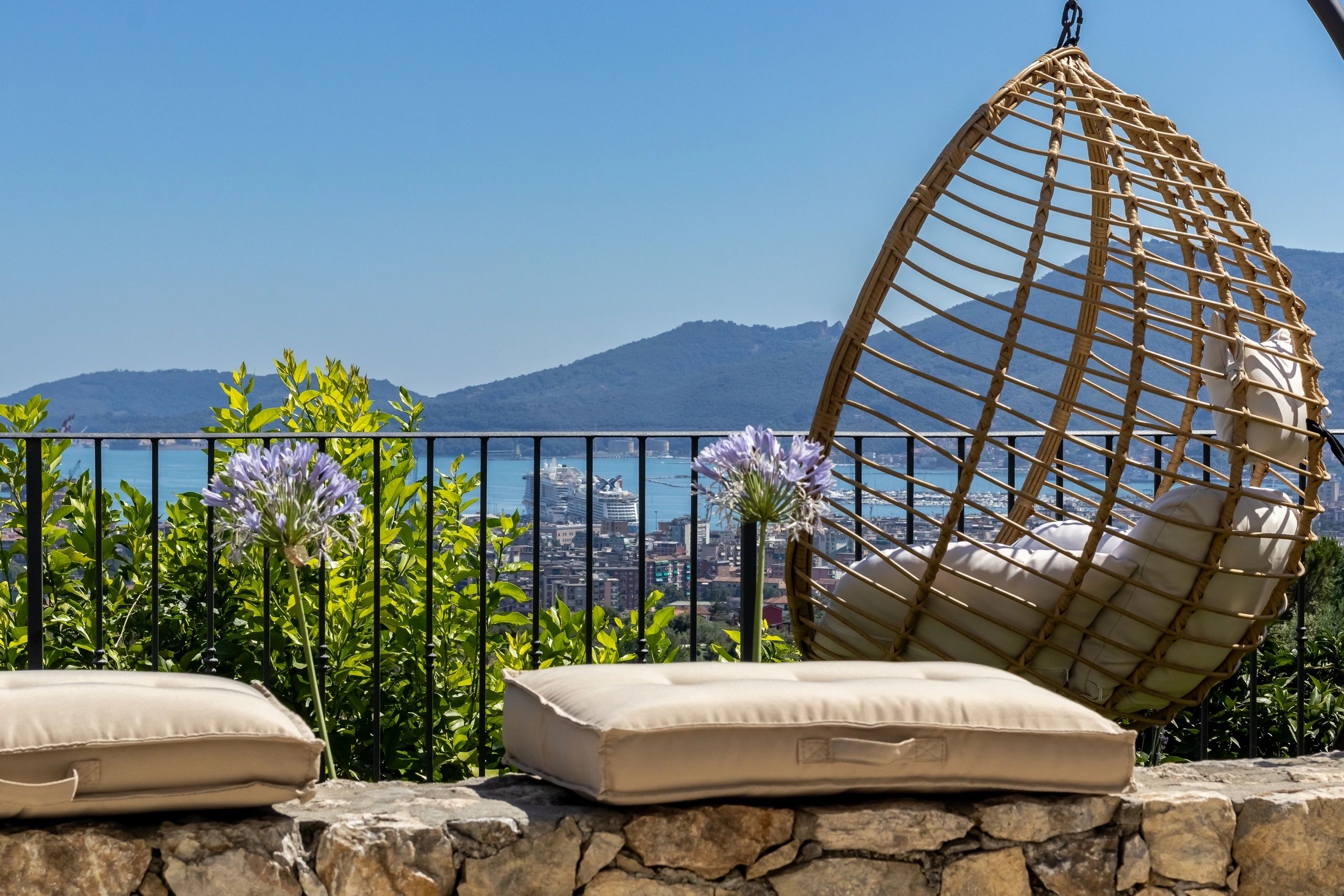 The Mediterranean garden surrounds you with olive trees, fruit trees, mature pines, colorful flowers, and a charming gazebo—an ideal spot for quiet moments and fresh sea breezes. An automatic irrigation system keeps the landscape green and vibrant all year.