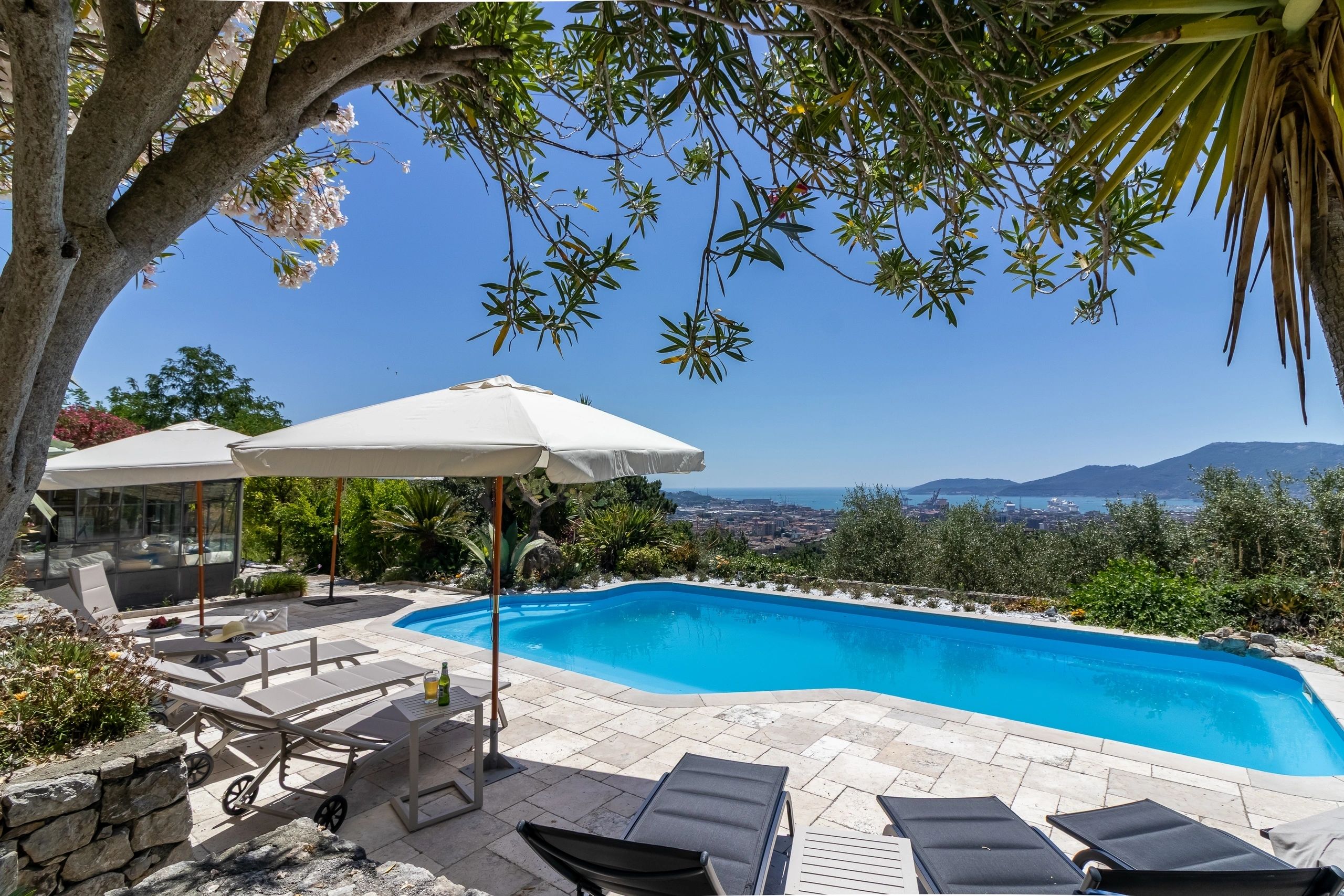 Welcome to Villa Amaranta, where classic elegance meets breathtaking sea views. The romantic swimming pool is set in front of the villa, offering an uninterrupted vista of the shimmering coastline. Relax on the spacious covered terrace, complete with a large lounge area, plenty of sun loungers, and comfortable seating perfect for enjoying meals against the backdrop of the sea.