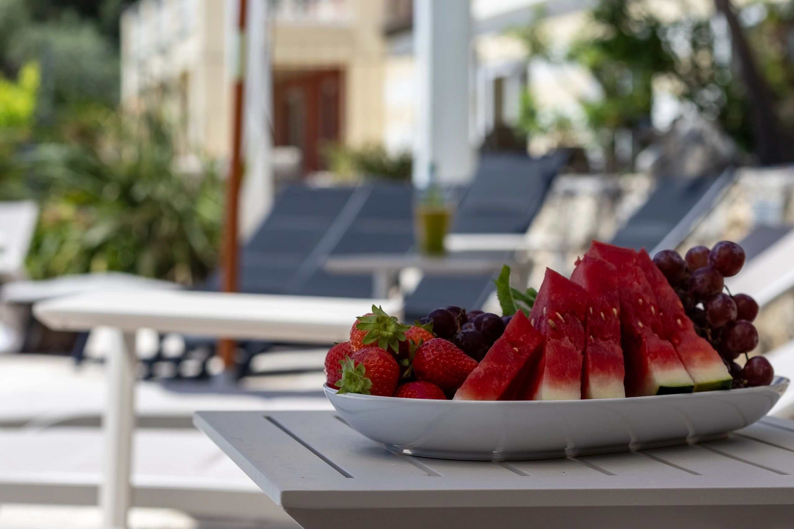 The Mediterranean Garden surrounds you with olive trees, fruit trees, mature pines, colourful blooms, and a charming gazebo—an ideal spot to feel the refreshing sea breeze and admire the extraordinary panorama. An automatic irrigation system keeps the landscape lush and vibrant all year.